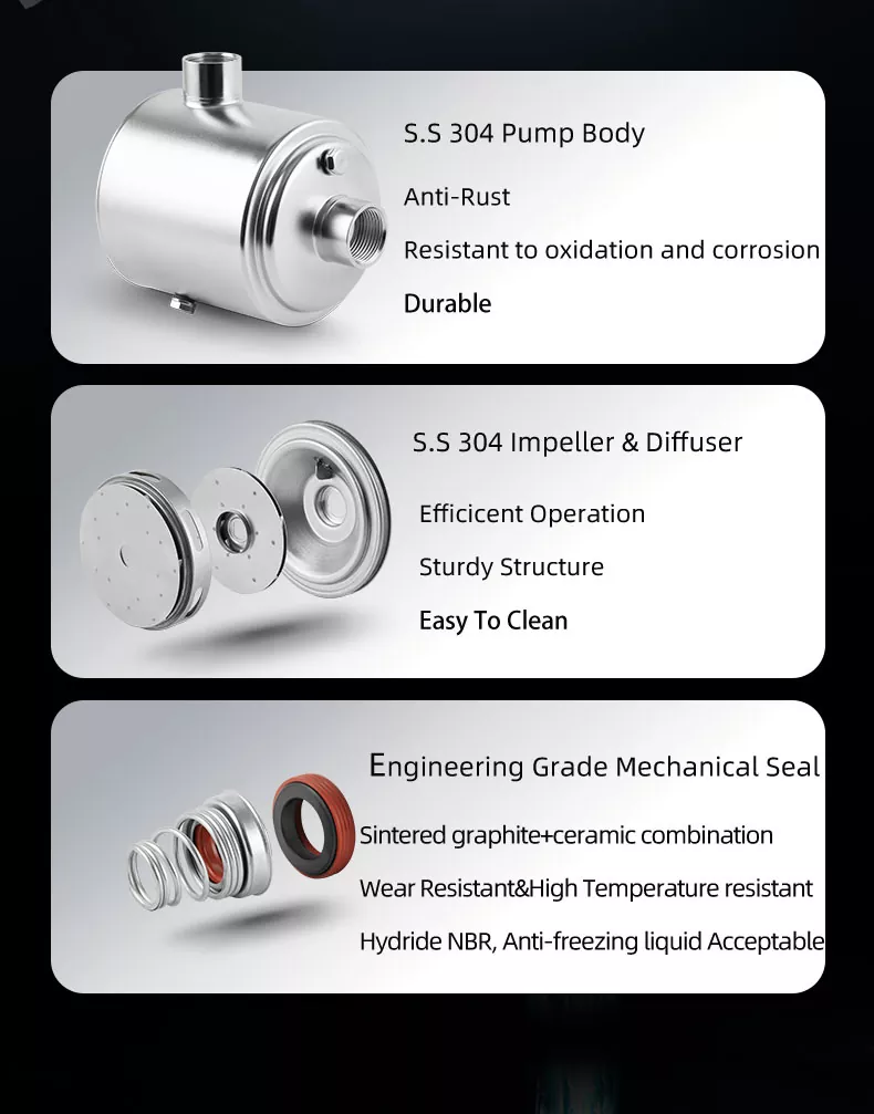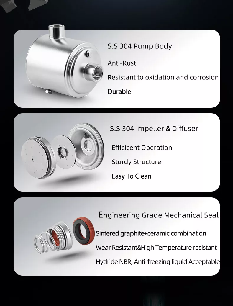 Издржљивост је кључна када је у питању пумпе за воду, а наша паметна пумпа за вишеструку притисак је изграђена да траје. Изграђен од висококвалитетних материјала и дизајниран за дугорочну поузданост, ова пумпа је инвестиција која ће вам доћи добро. Без обзира да ли га користите за стамбене или комерцијалне апликације, можете да верујете да ће ова пумпа издржати тест времена.
